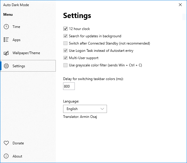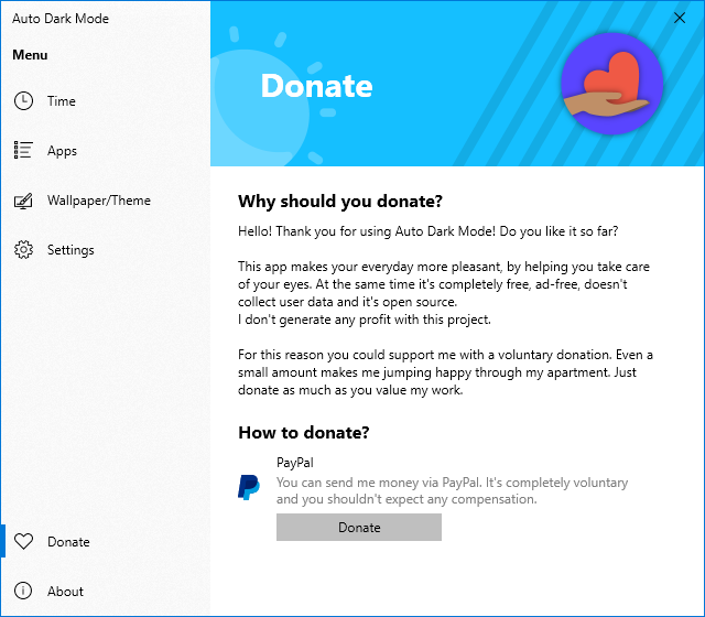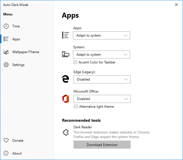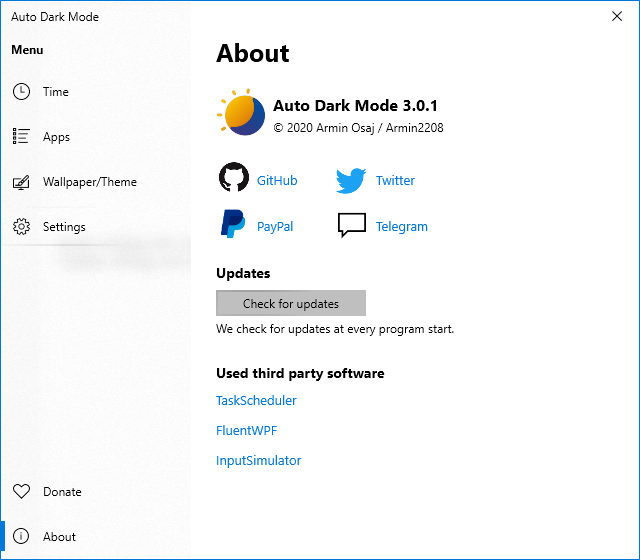 I still use and will continue to use this software after a month of testing it. It’s worked great. It is tricky, however, to configure themes in windows with this software. I don’t really blame the software, but windows, because of many issues with their theme configuration. For instance you cannot edit a current theme, but instead have to delete the old theme and make a new one. For my light mode I don’t like the whole taskbar being white, which is why I use custom themes. I also change my desktop background from the nostalgic bliss wallpaper during the day to a fanmade night version of bliss as my wallpaper at night. It is excellent software once you get it configured, as I said Windows themes are a bit finicky at times, but the result made using my computer at night more enjoyable.